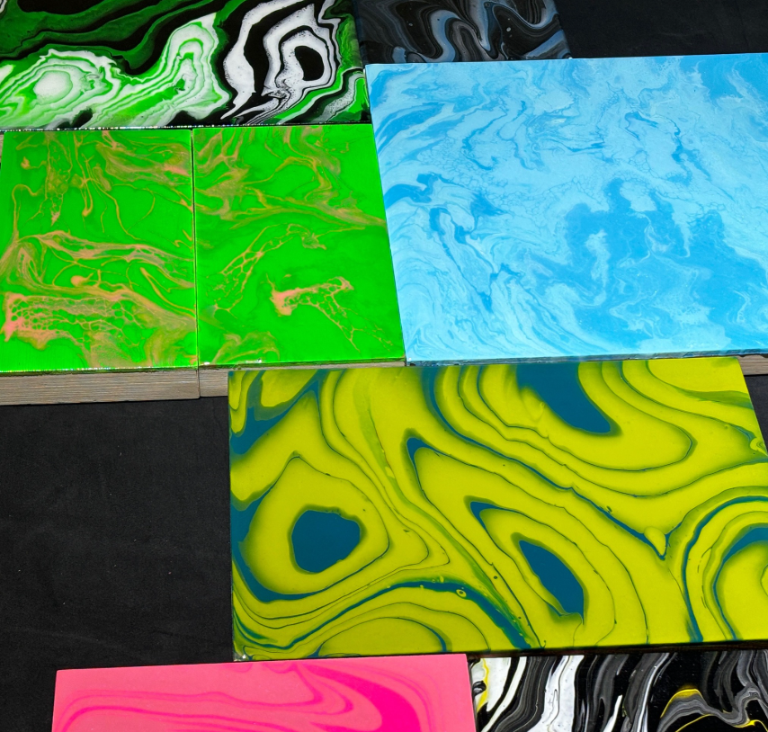 무작위성과 통제의 균형: 플루이드 아트는 유동적인 물감의 흐름을 통제와 무작위성 사이에서 조율합니다. 이는 현실과 이상 사이의 긴장을 예술적으로 표현하는 데 적합합니다.