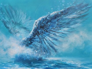 Image of artwork:Description of the artwork:그림에서는 크게 파도와 날개가 등장합니다.파도는 불확실한 현실의 상징입니다.그리고 바다는 유동적이...
