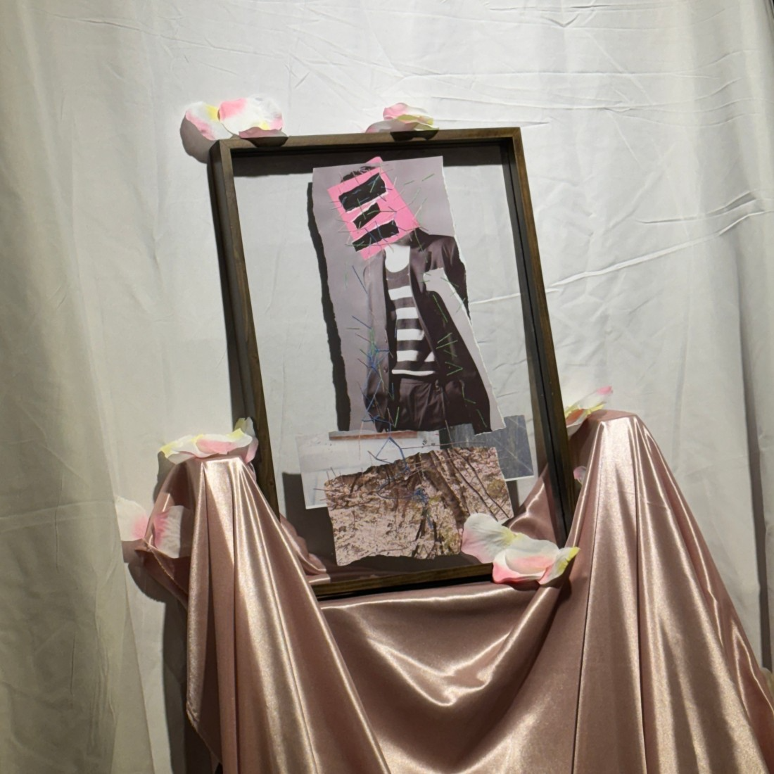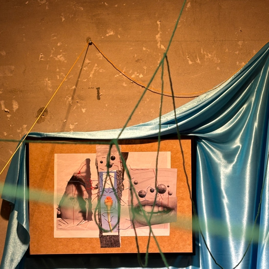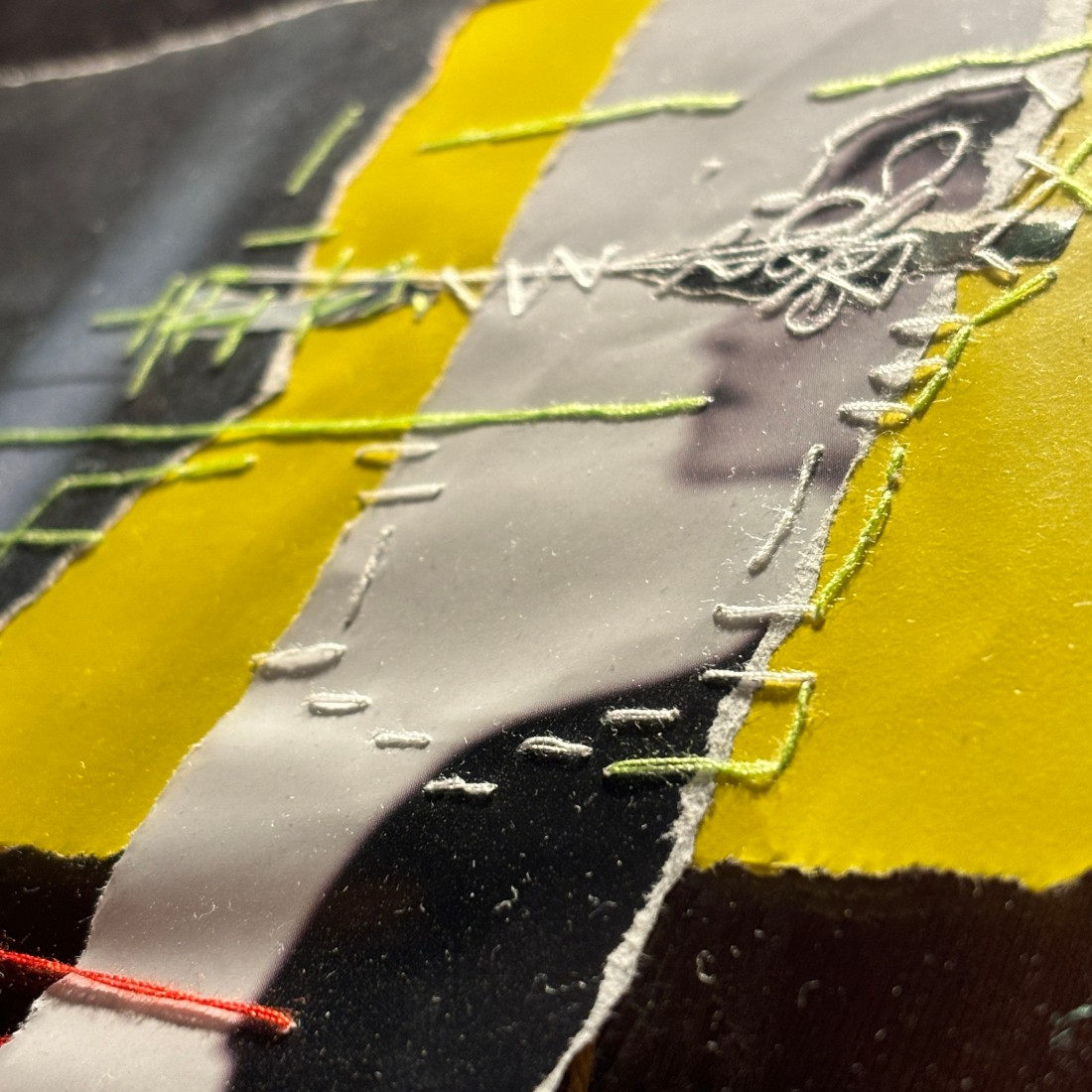 While making <I'm Sorry My Lament Is So Long>, I wanted to express the image of a friend saying goodbye under a cherry tree on a spring day. It's hard to remember the face now, but I expressed my friend's bright energy and witty character with green thread, and my feelings of deciding to let my friend go but feeling a little sad were expressed with blue thread.