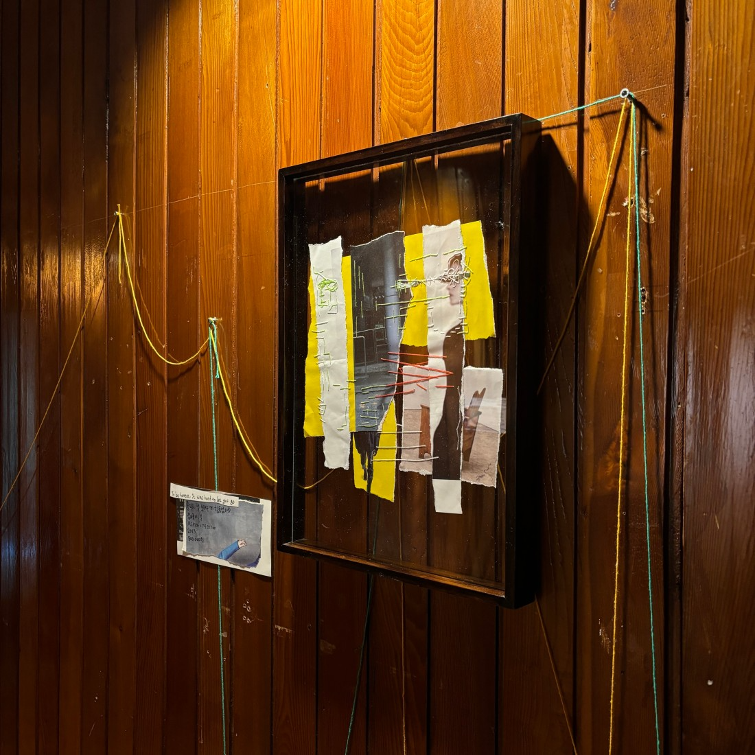 <내 애도가 너무 길어서 미안해>를 만들면서 봄날 벚나무 밑에 이별 인사하는 친구의 모습을 표현하고 싶었어요. 지금 얼굴을 기억하기 어렵지만 친구의 밝은 에너지와 재치 있는 캐릭터를 초록 실로 표현했고 친구를 보내주기로 마음을 먹었지만 조금은 슬펐던 제 감정은 파란 실로 표현했답니다.
