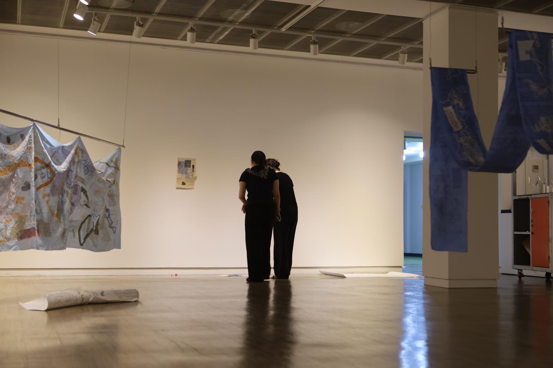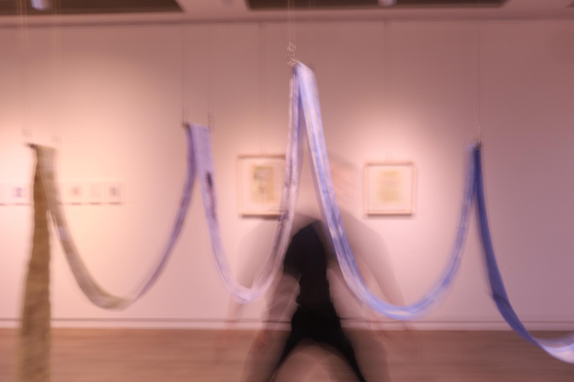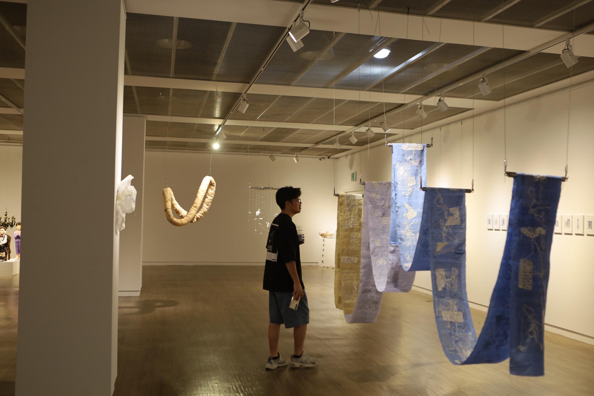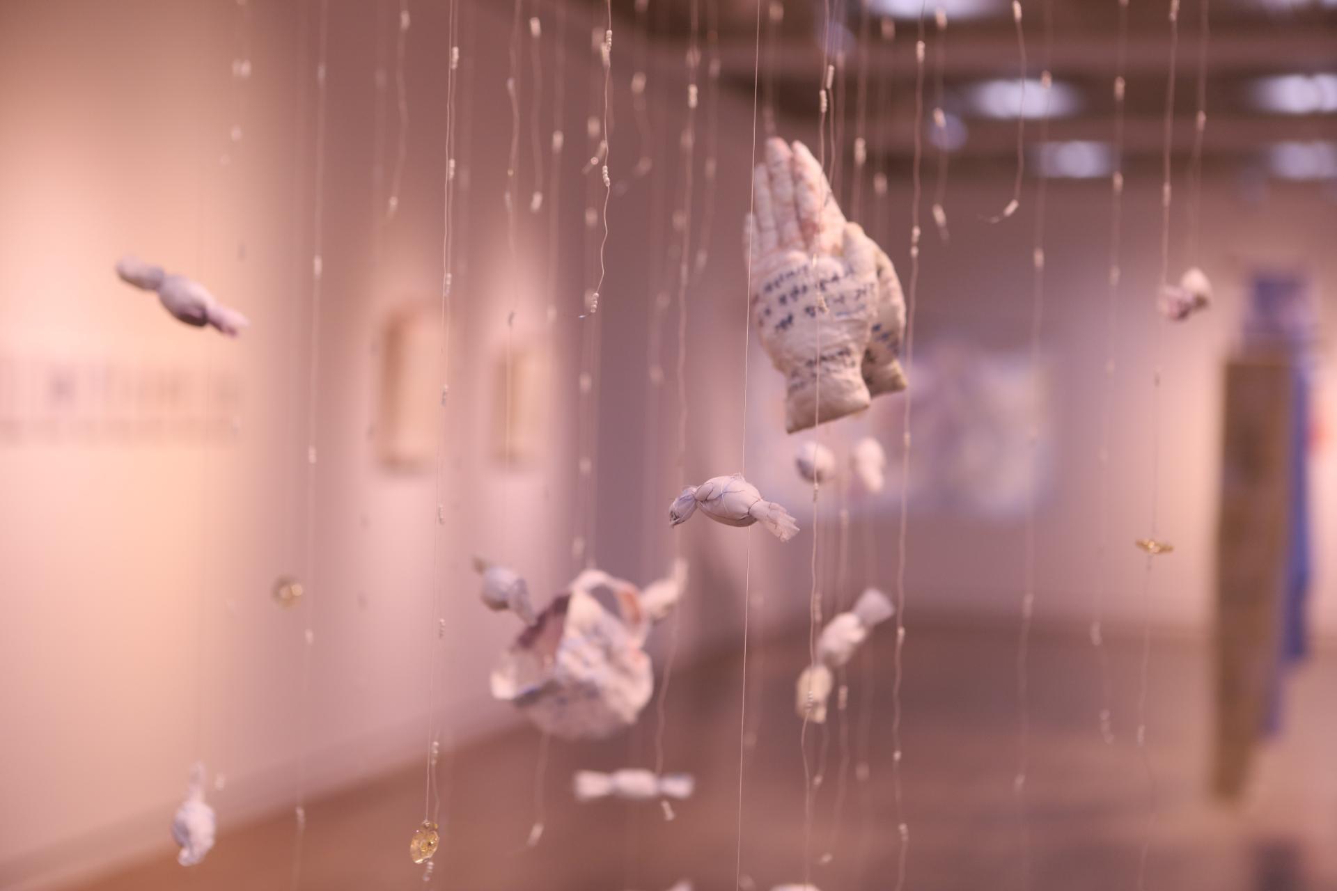 다효지(신지원)의 작업은 '행위적 아카이빙'의 전형이라 할 수 있다. 그는 할머니로부터 물려받은 낡은 한복과 천 조각을 바느질하며, 반복적인 행위 속에서 애도의 정서를 물질로 직조한다. 기도문을 써내려가고 손편지를 인쇄하며, 그것을 다시 천 위에 바느질하는 과정은 단순한 제작을 넘어 몸을 통한 기록이자 감각의 호출로 기능한다. 이때 바느질의 리듬은 애도의 언어가 되고, 그 감각은 다시 시가 되어 관람자의 정서적 층위에 닿는다.